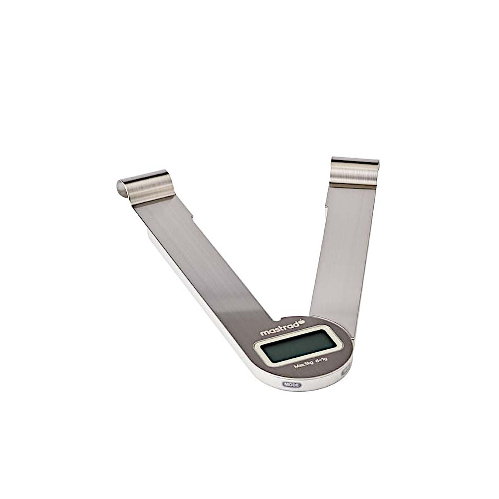 Posiada zakończenie w kształcie haka, dzięki czemu można ją zawiesić na relingu kuchennym. Jej wyjątkowa konstrukcja pozwala na ważenie produktów w pojemnikach we wszystkich rodzajach i kształtach.