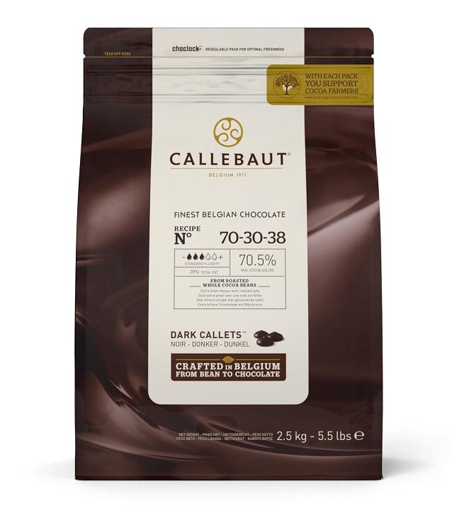 Pastylki Callebaut Strong 70 to gorzka czekolada z wysoką zawartością kakao - 70%. Posiada mocny oraz wyrazisty smak. Idealna do deserów i napojów czekoladowych. Można ją stosować w produkcji sosów czekoladowych, ganache, nadzień, lodów oraz wielu innych czekoladowych deserach.