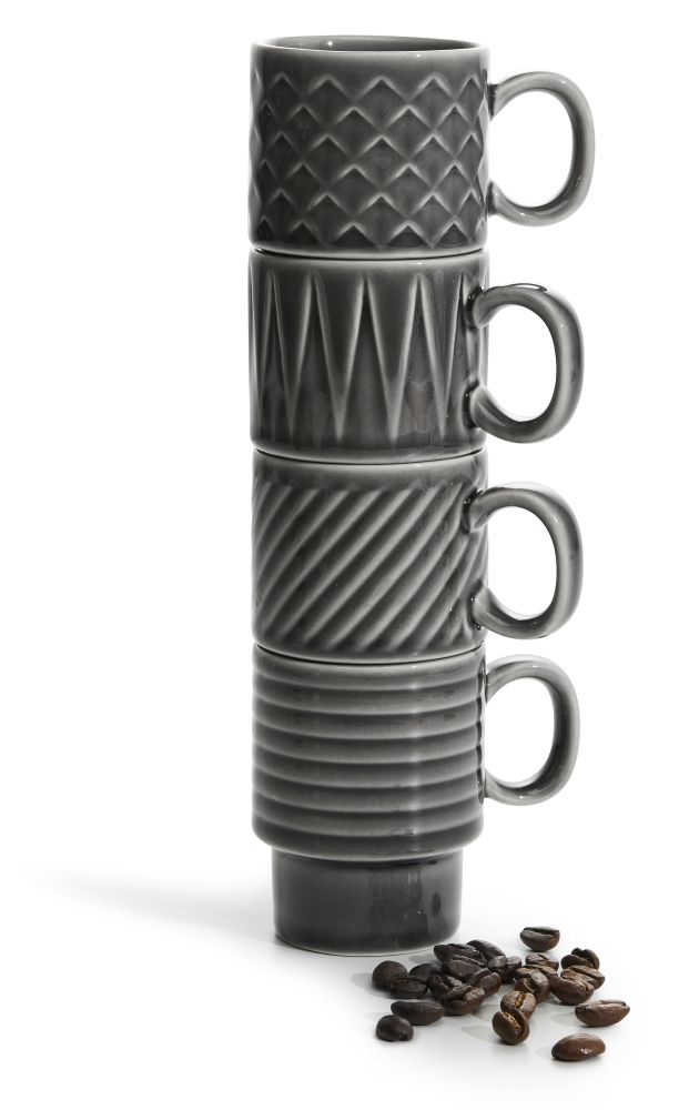 Dolna część jest węższa, dzięki czemu kilka filiżanek wchodzi jedna w drugą, co znacznie oszczędza miejsce podczas przechowywania i usprawnia ich przenoszenie.