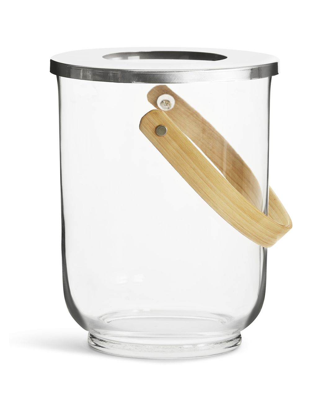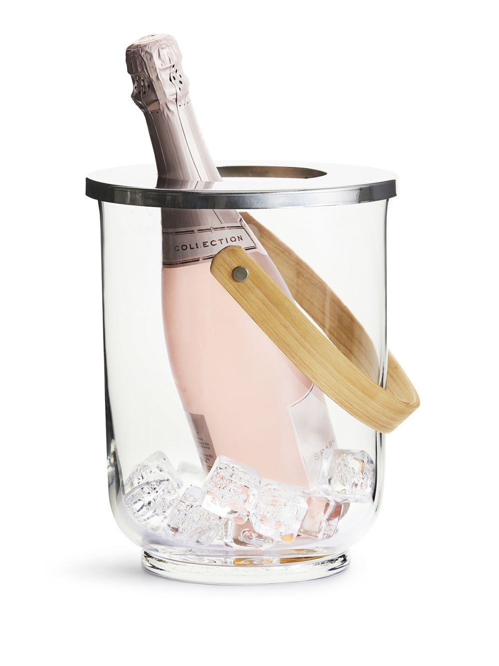 Wiaderko do chłodzenia szampana, szklane ze stalową nakładką i dębowym uchwytem.