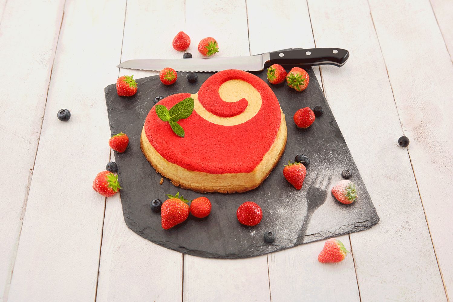 Forma silikonowa w kształcie serca z fakturą na dnie, dającą ciekawy rysunek na powierzchni gotowego ciasta lub deseru.