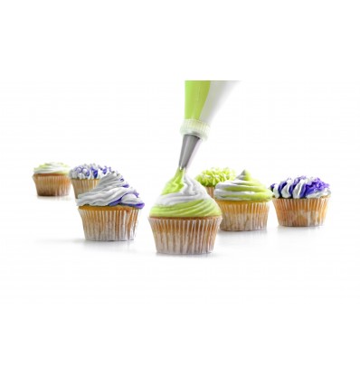 Każdy z rękawów podzielony jest wewnątrz wzdłuż na dwie komory. Każdą z nich można napełnić lukrem lub kremem w innym kolorze, uzyskując tym samym ciekawe barwne efekty wyciskanych rozet, muszelek czy falbanek.