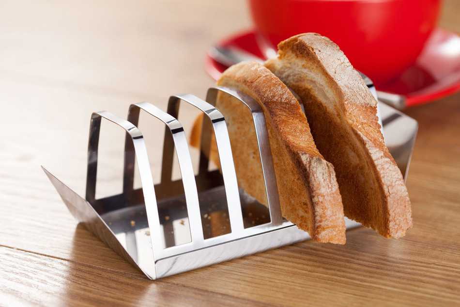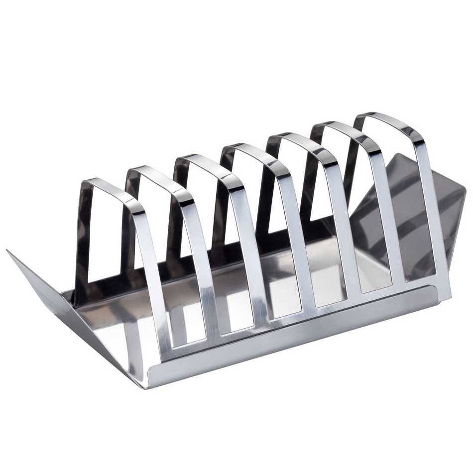 Elegancki stojak na tosty z polakierowanej stali nierdzewnej.