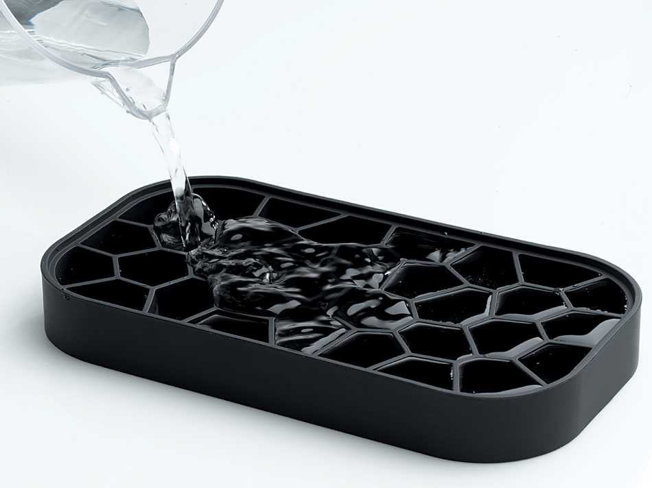 Foremka, pełniąca jednocześnie funkcję przykrywki, została wykonana z silikonu platinum - elastycznego, nieprzywieralnego tworzywa, które ułatwia wyjmowanie kostek.