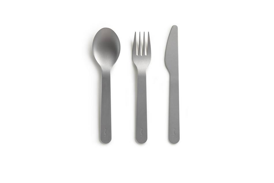 W komplecie znajdują się: łyżka, nóż i widelec. Sztućce możesz myć w zmywarce.