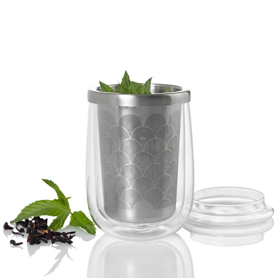 Szklanka z filtrem to połączenie przepięknego, innego designu, z funkcjonalnością, bowiem nie tylko wygląda świetnie, ale też dłużej utrzymuje temperaturę napoju oraz chroni przed poparzeniem.