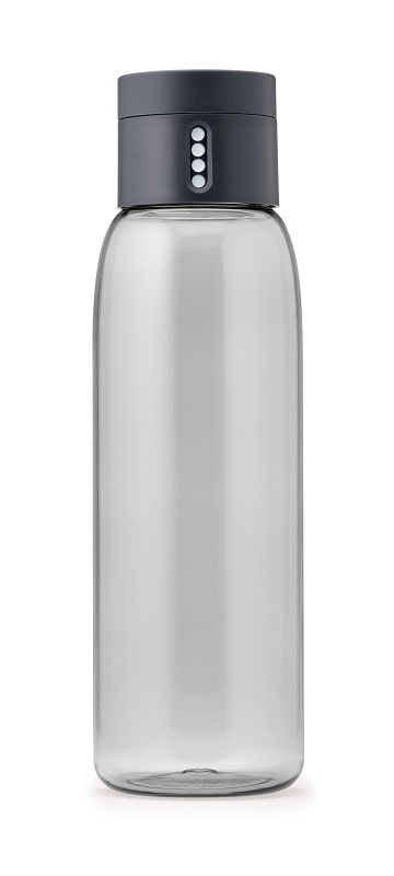 W codziennym chaosie często nie sposób pamiętać ile wody wypiliśmy w danym dniu. Ta butelka została stworzona aby zrobić to za nas. Butelka kontroluję wypitą przez nas ilość wody. Posiada ona wskaźnik napełnienia butelki. Po napełnieniu jednej butelki wyświetla się jedna kropka oznacza to, że przyjęliśmy do organizmu 600 ml wody. Po napełnieniu i wypiciu kolejnej porcji wody wskaźnik wskaże dwie kropki, będzie to oznaczało, że organizm przyjął 1200 ml płynów. Wskaźnik posiada 4 kropki czyli do 2400 ml płynu. Potem zeruje się i od nowa wskazuje kropki.