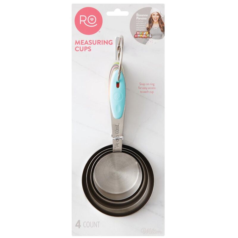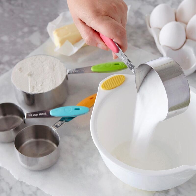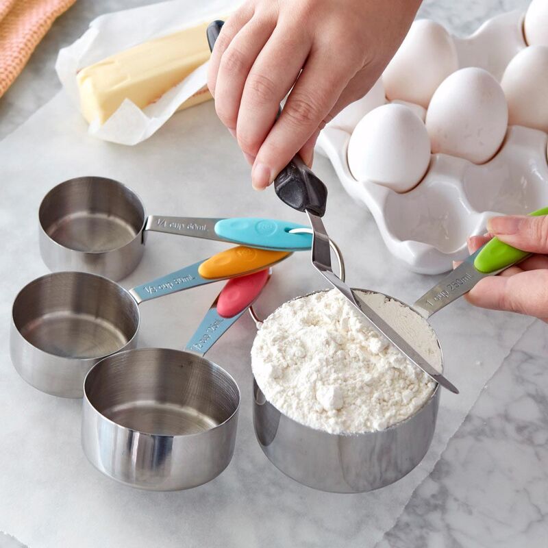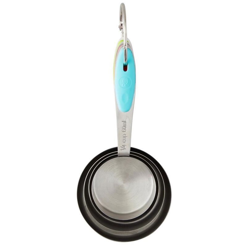 Praktyczne miarki (4 sztuki w komplecie od 1/4 szklanki do całej szklanki) w kształcie rondelków do szybkiego i precyzyjnego odmierzania składników zarówno sypkich jak i płynnych. Niezbędne zawsze tam, gdzie ważna jest dokładna ilość - szczególnie przy odmierzaniu mąki, cukru, oliwy, oleju, octu.