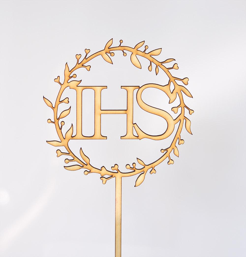 Topper ze sklejki IHS, wianek 1 (średnica 12 cm) - Mill Art
