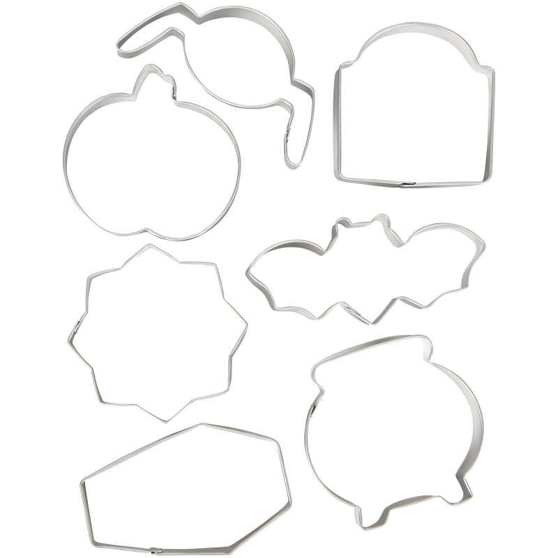 Straszny zestaw foremek do ciasteczek :) 7 foremek: pająk, nagrobek, dynia, nietoperz, pajęczyna,trumna i kociołek, żeby Halloween był jeszcze zabawniejszy i jeszcze śmieszniejszy :)
