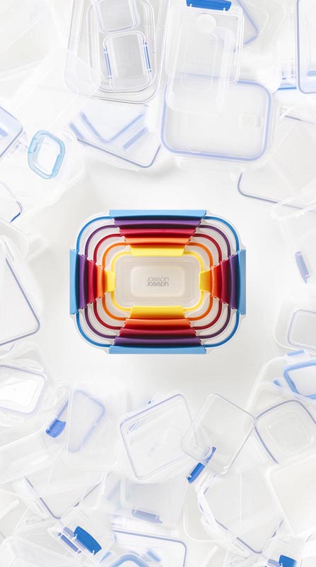 Pojemniki można przechowywać wkładając mniejszy do większego. Pozwala to zaoszczędzić miejsce w kuchni.