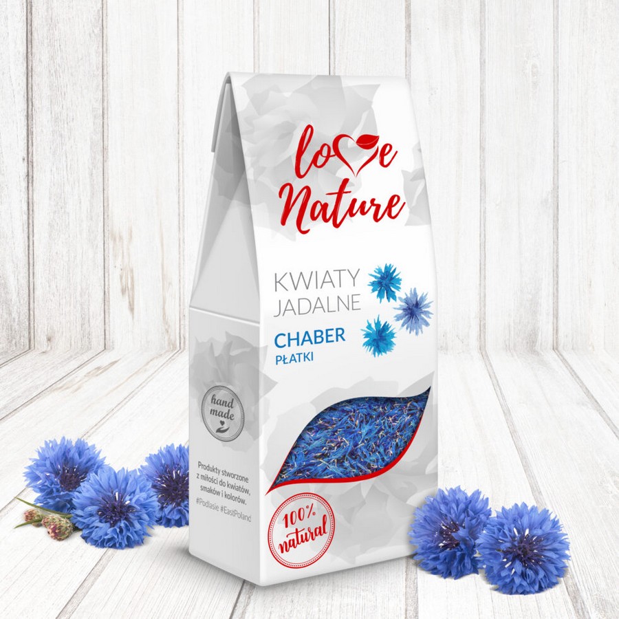 Jadalne płatki chabru firmy Love Nature to piękna i naturalna dekoracja, must-have w każdej kuchni.