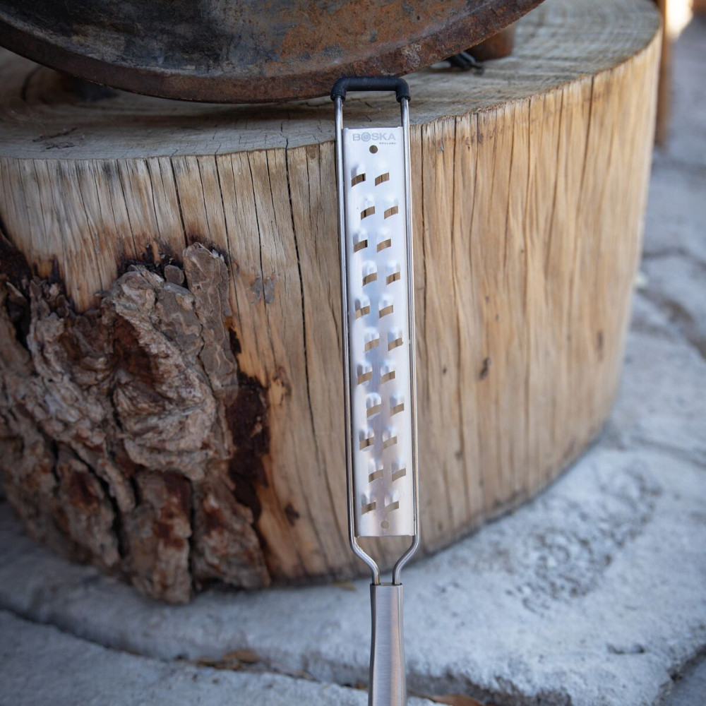 Solidna wąska tarka do ścierania na wiórki serów miękkich, czekolady, marchewki i nie tylko. Szerokość oczka to aż 0,5cm!