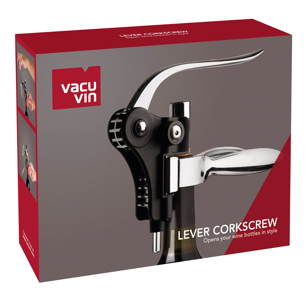 Użycie tego korkociągu, choć podobne do zwykłego, jest o wiele prostsze i wygodniejsze, a otwarcie butelki następuje szybciej i bez wysiłku. Wystarczy ruch dźwigni w dół i w górę aby wyciągnąć korek.