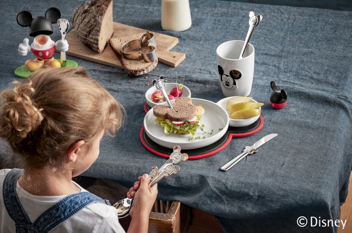 Zestaw trzech stalowych łyżeczek różnej dla dzieci powyżej trzeciego roku życia. Trzonki łyżek zakończone są precyzyjnie wykonanymi podobiznami postaci z popularnej kreskówki - Myszki Miki.