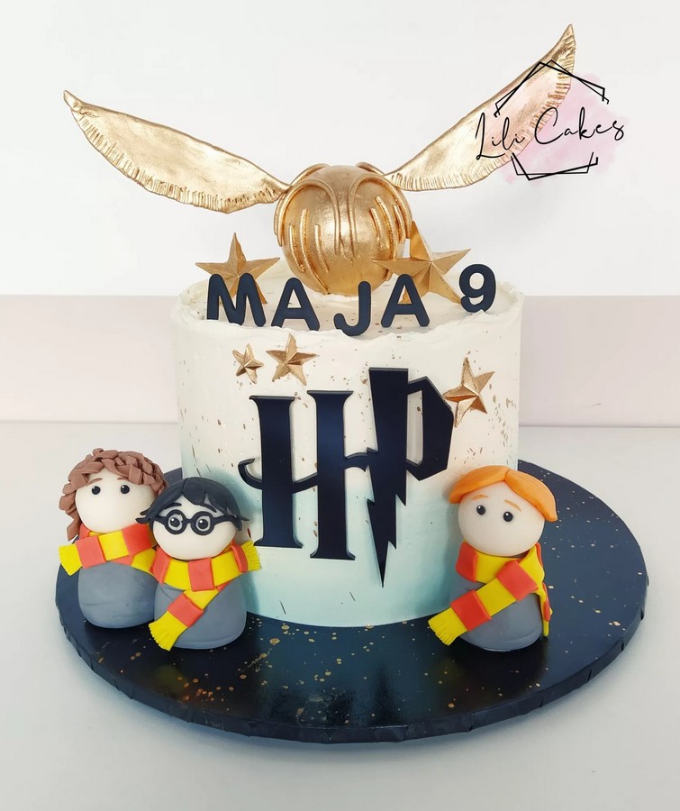 Znaczek z czarnej pleksy, idealny na tort dla miłośników Harrego Pottera.