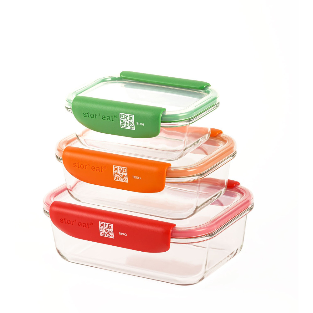 Materiał: pojemnik szkło borokrzemowe zakres temperatur od -20 C do 400 C, pokrywa tworzywo BPA Free, uszczelka silikon, klamry zamykające plastik