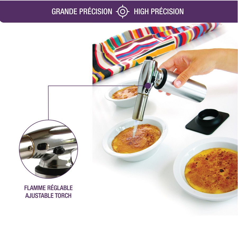 Idealnie sprawdzi się podczas karmelizacji kremów, deserów, a nawet opalania - parzenia warzyw: papryki, pomidora, cebuli. Można nim również zamknąć mięso oraz stopić ser na kanapce.