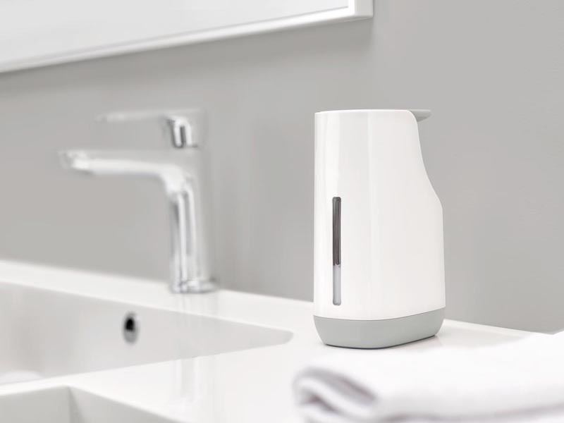 Szeroka pompka z systemem zapobiegającym kapaniu mydła pozwoli na utrzymanie czystości. Dzięki przezroczystej wstawce łatwo można kontrolować poziom mydła.
