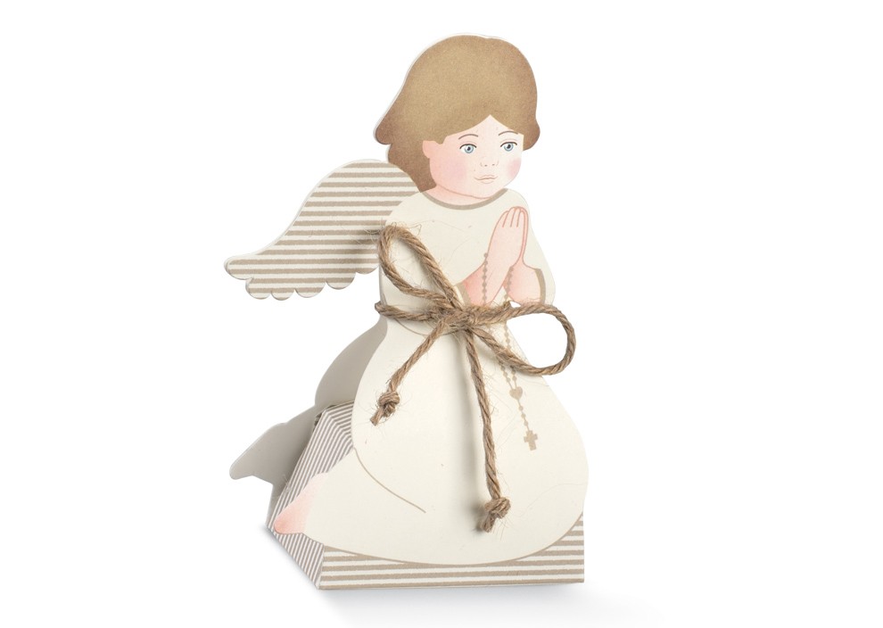 Eleganckie pudełko w formie klęczącego aniołka.