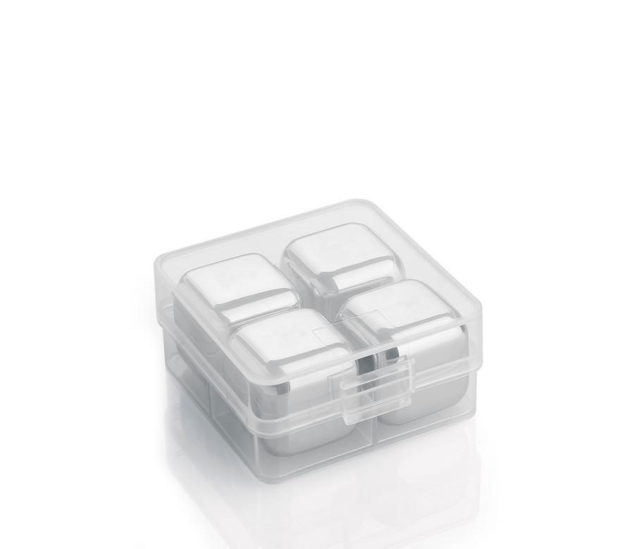 Zestaw czterech kostek do chłodzenia alkoholu.