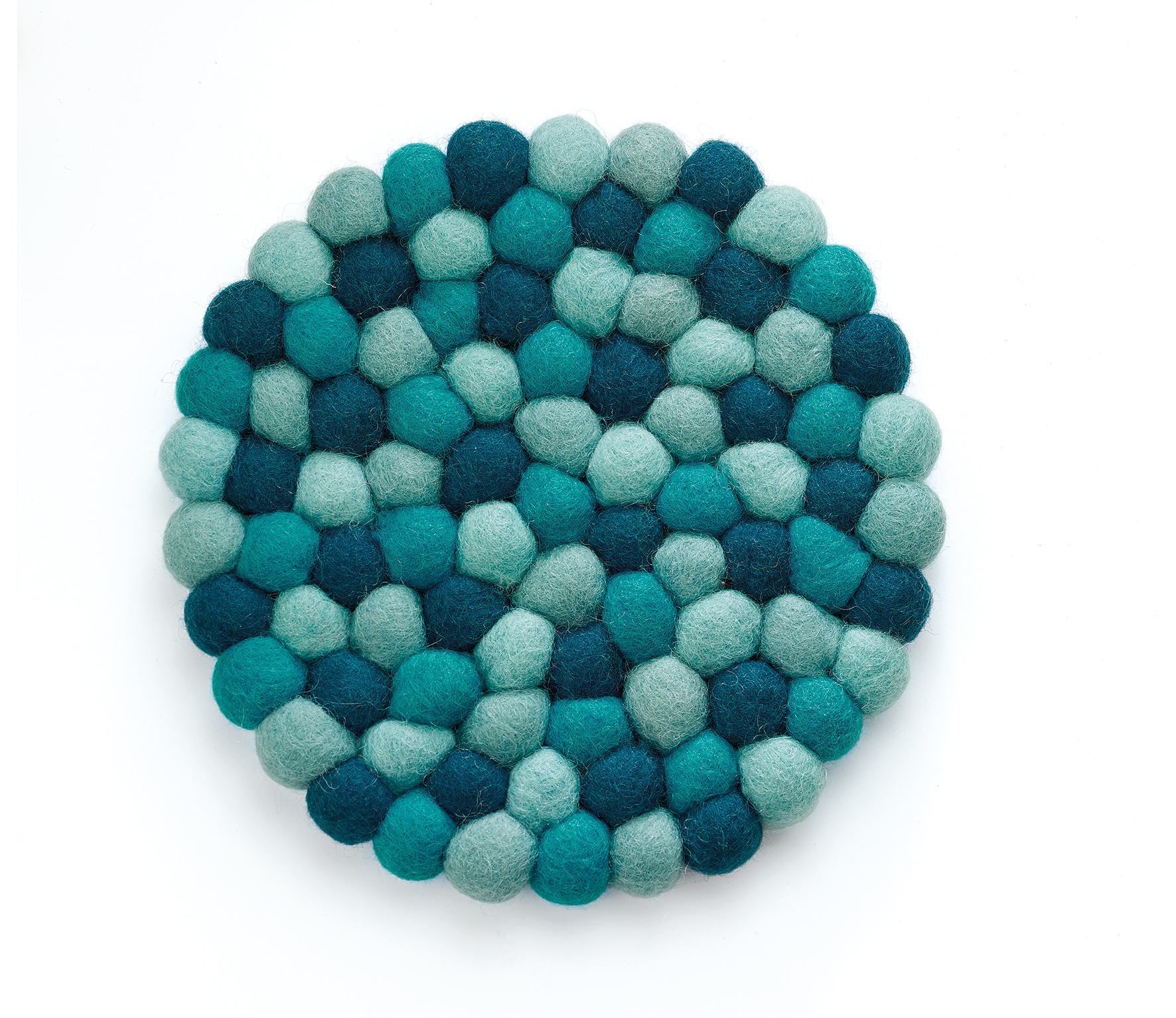 Efektowna podkładka z kulek z owczej wełny. Ochroni stoły i blaty przed gorącymi naczyniami i garnkami.