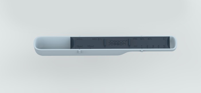 Przesuwna podziałka pozwala odmierzać składniki w mililitrach, łyżeczkach do herbaty oraz łyżkach stołowych.