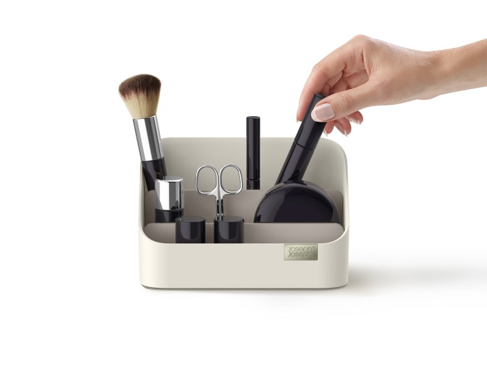 Organizer na kosmetyki idealnie sprawdzi się w łazience lub na toaletce. Z przodu niższy, z tyłu wyższy dzięki temu zapewnia łatwy dostęp do kosmetyków.