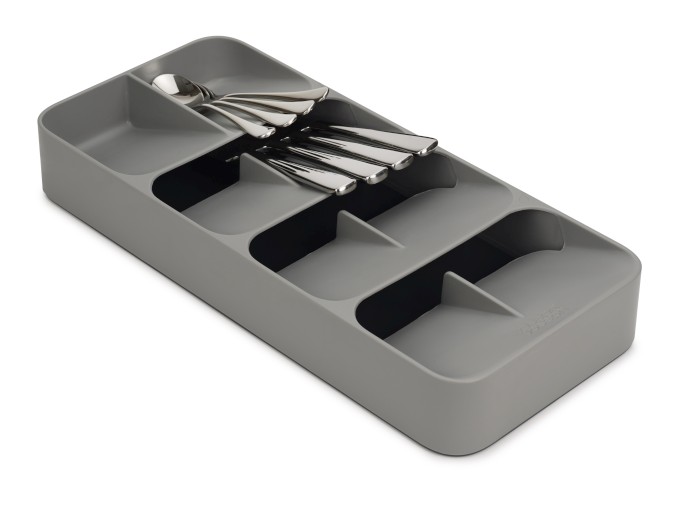 Organizer do szuflad na sztućce. Wykonany z tworzywa sztucznego, posiada komory ułożóne pod kątem dzięki czemu możemy zaoszczędzić miejsce w szufladzie.