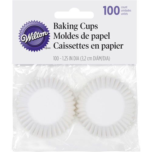 Papilotki do minimuffinów mają standardowy rozmiar i pasują do wszystkich blach do minimuffinów, w których górna średnica gniazda ma 3,2 cm.