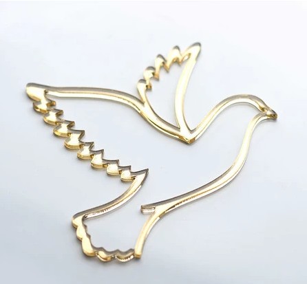 Obrys gołąbka z pleksy lustrzanej, złotej.