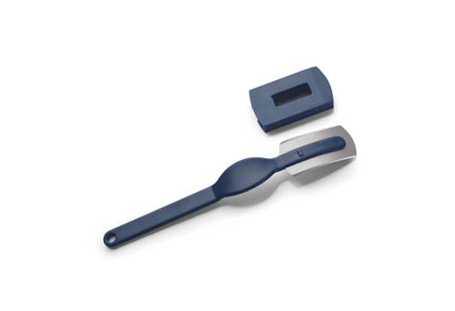 Uchwyt ostrza jest wykonany z tworzywa sztucznego, a ostrze jest chronione nasadką.