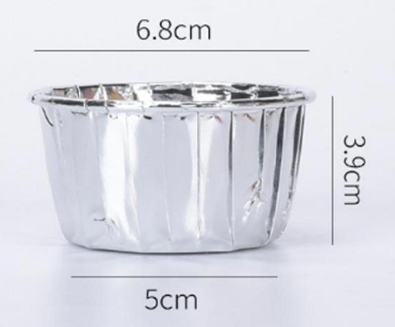 Komplet 50 papilotek do pieczenia babeczek i muffinów, w srebrnym kolorze.