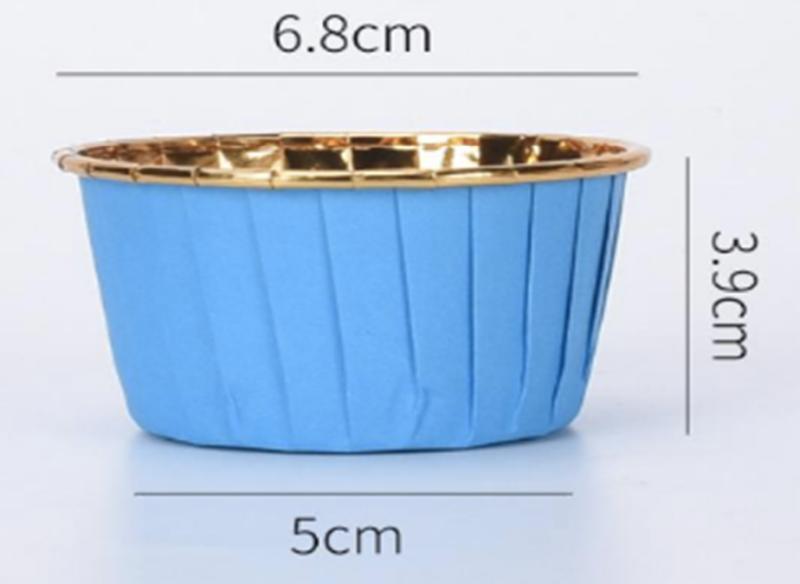 Komplet 50 papilotek do pieczenia babeczek i muffinów, w niebieskim i złotym kolorze.