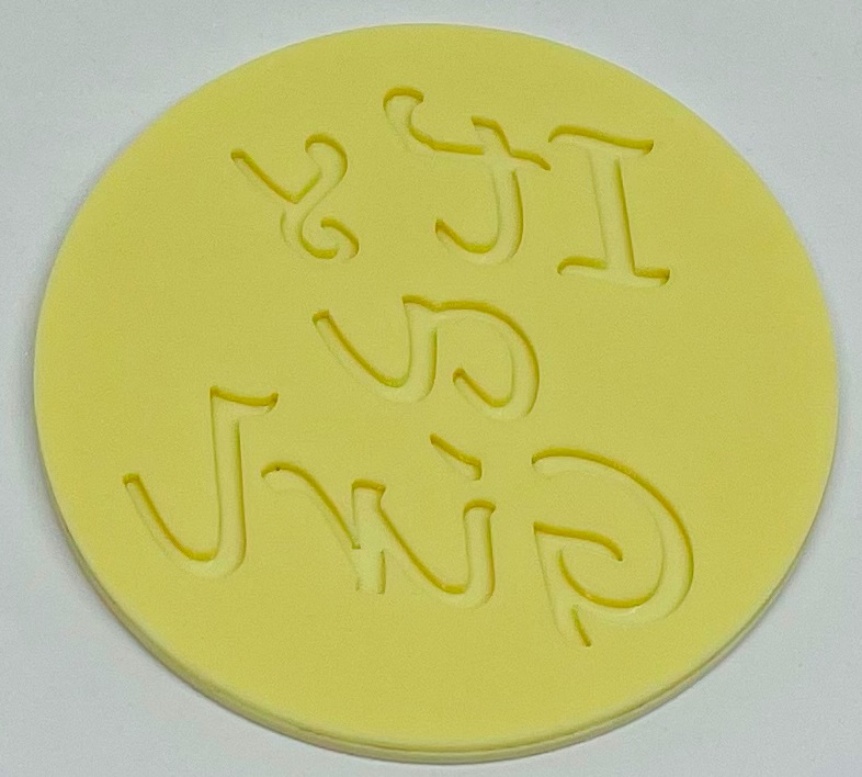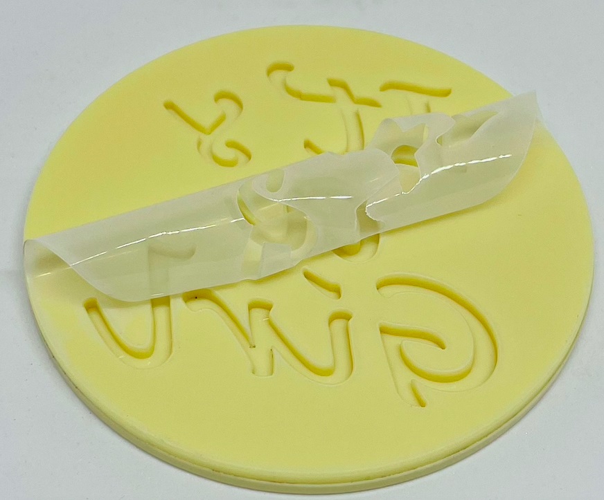 Dekoracyjny stempel do odciskania napisu na masie cukrowej.
