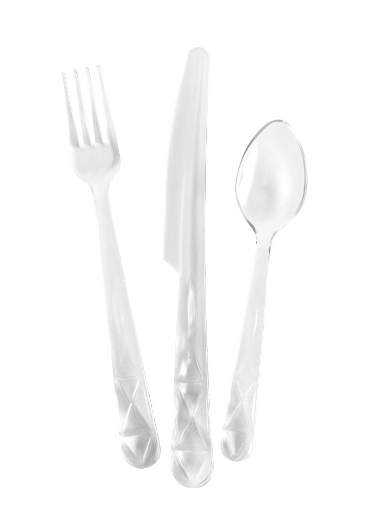 Sztućce są niezwykle eleganckie - wykonane z przezroczystego akrylu z wzorem stylizowanym na kryształ. Przy tym są bardzo wytrzymałe. Akrylowe akcesoria z łatwością przetrwają podróż w torbie czy koszu piknikowym.