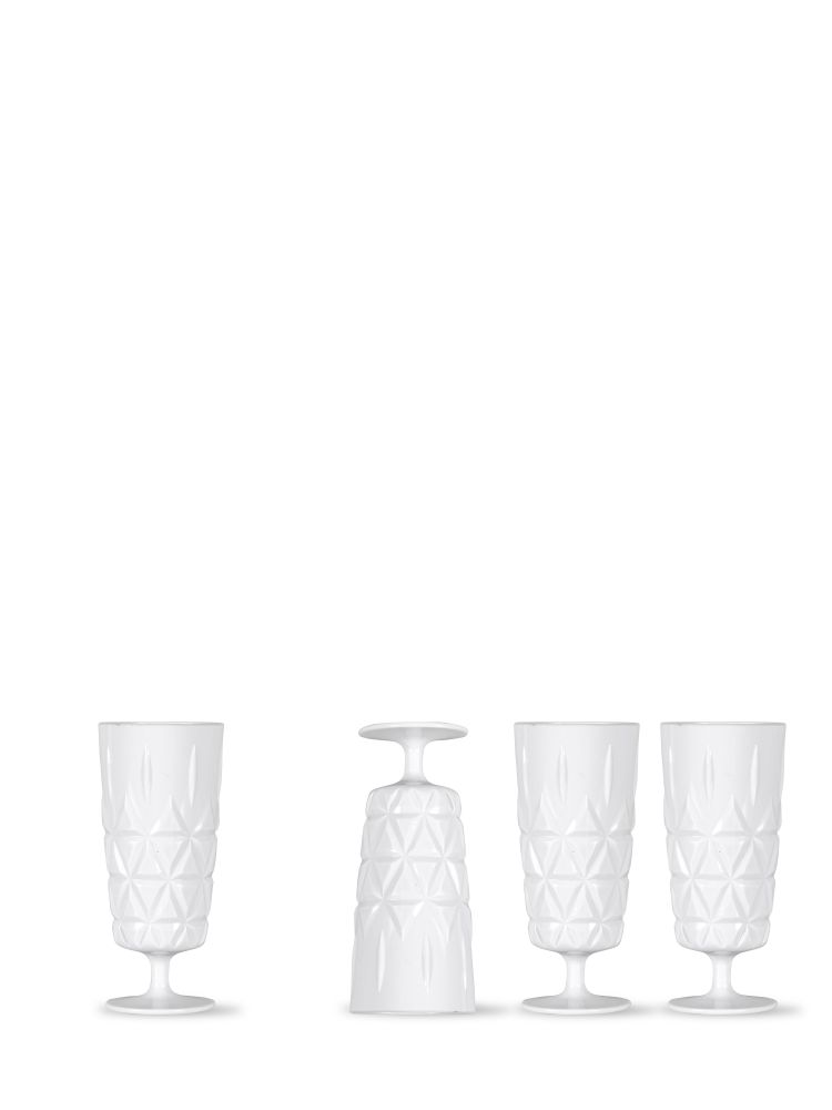 Kieliszki są niezwykle eleganckie - wykonane z białego akrylu z wzorem stylizowanym na kryształ. Przy tym są bardzo wytrzymałe.