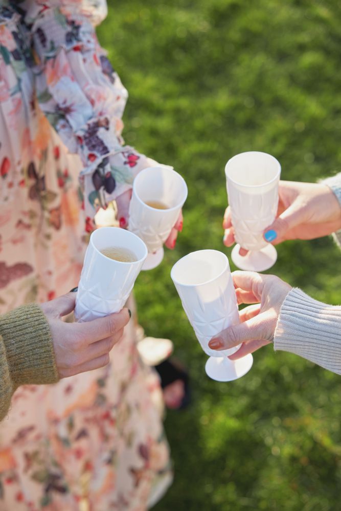Komplet czterech kieliszków do podawania szampana podczas pikników, na przyjęciach na balkonie lub tarasie.