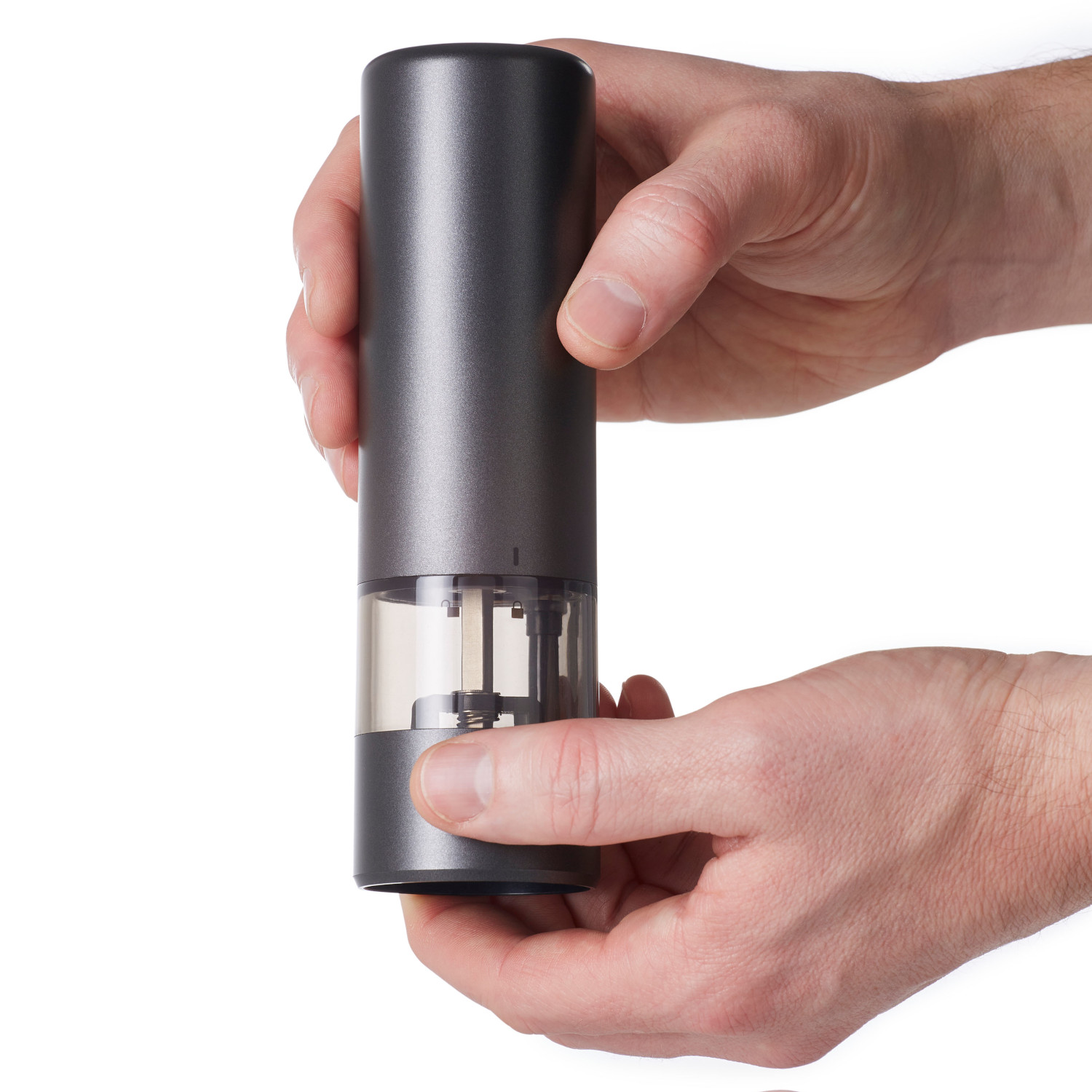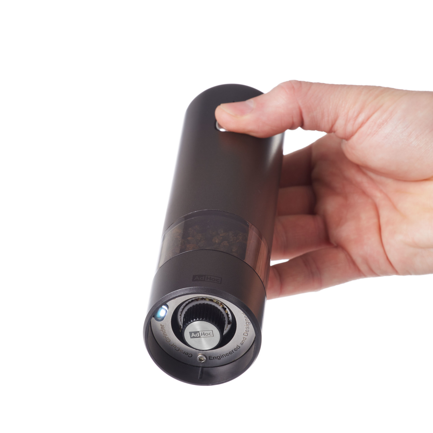 Akumulatorowy młynek do soli lub pieprzu. Wystarczy użyć jednej ręki, by naciśnięciem guzika przyprawić potrawę.