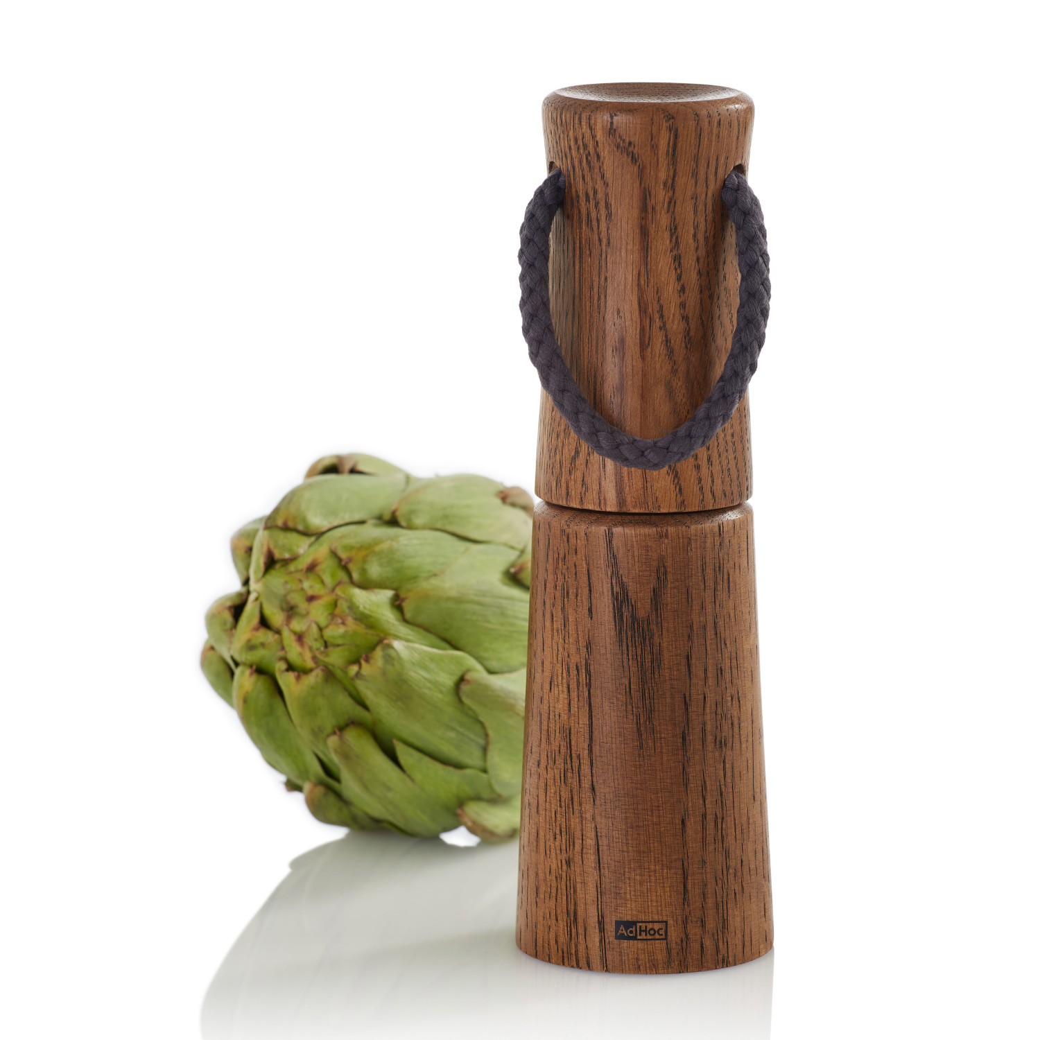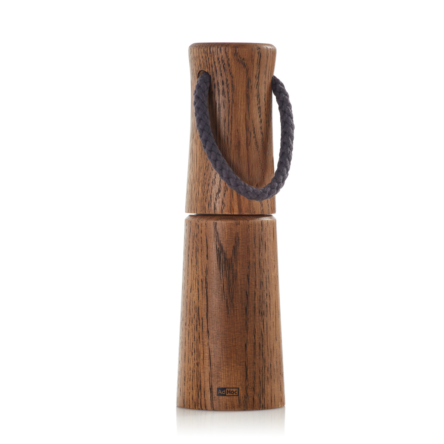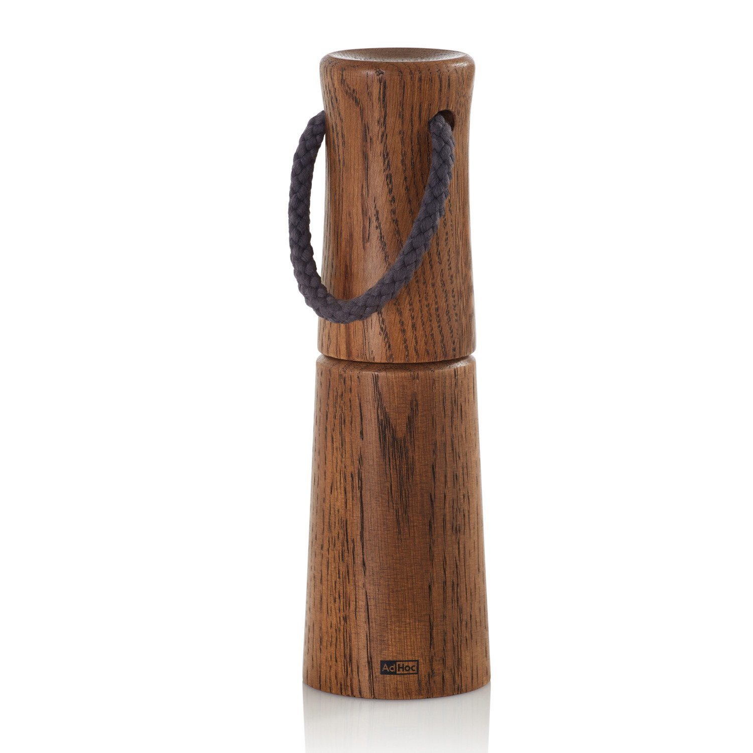 Młynek do soli lub pieprzu z ciemnego olejowanego drewna dębowego. Profilowana obudowa o zaokrąglonych krawędziach przyjemnie leży w dłoni. Bawełniany sznurek zamocowany w pokrywie młynka ułatwia przenoszenie.