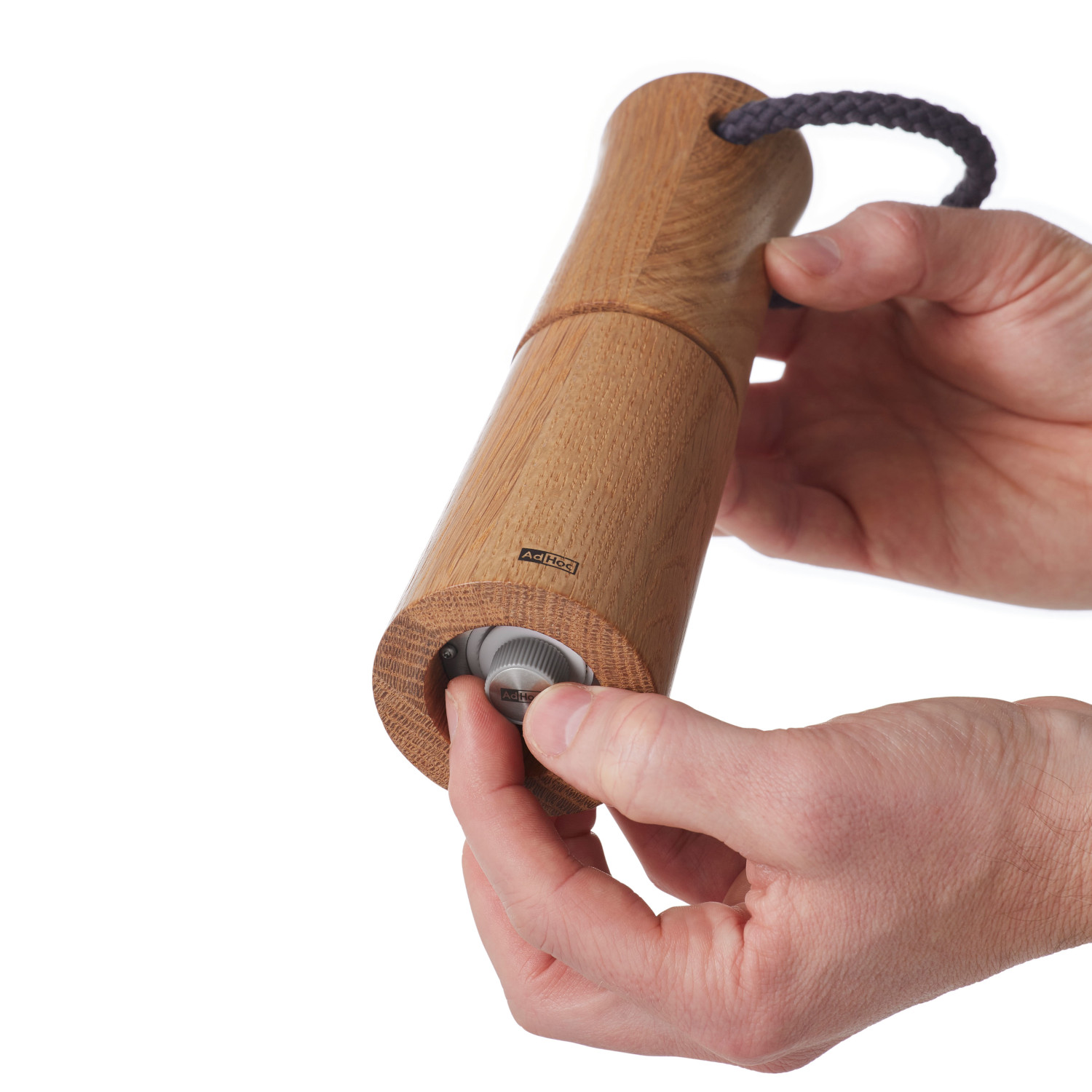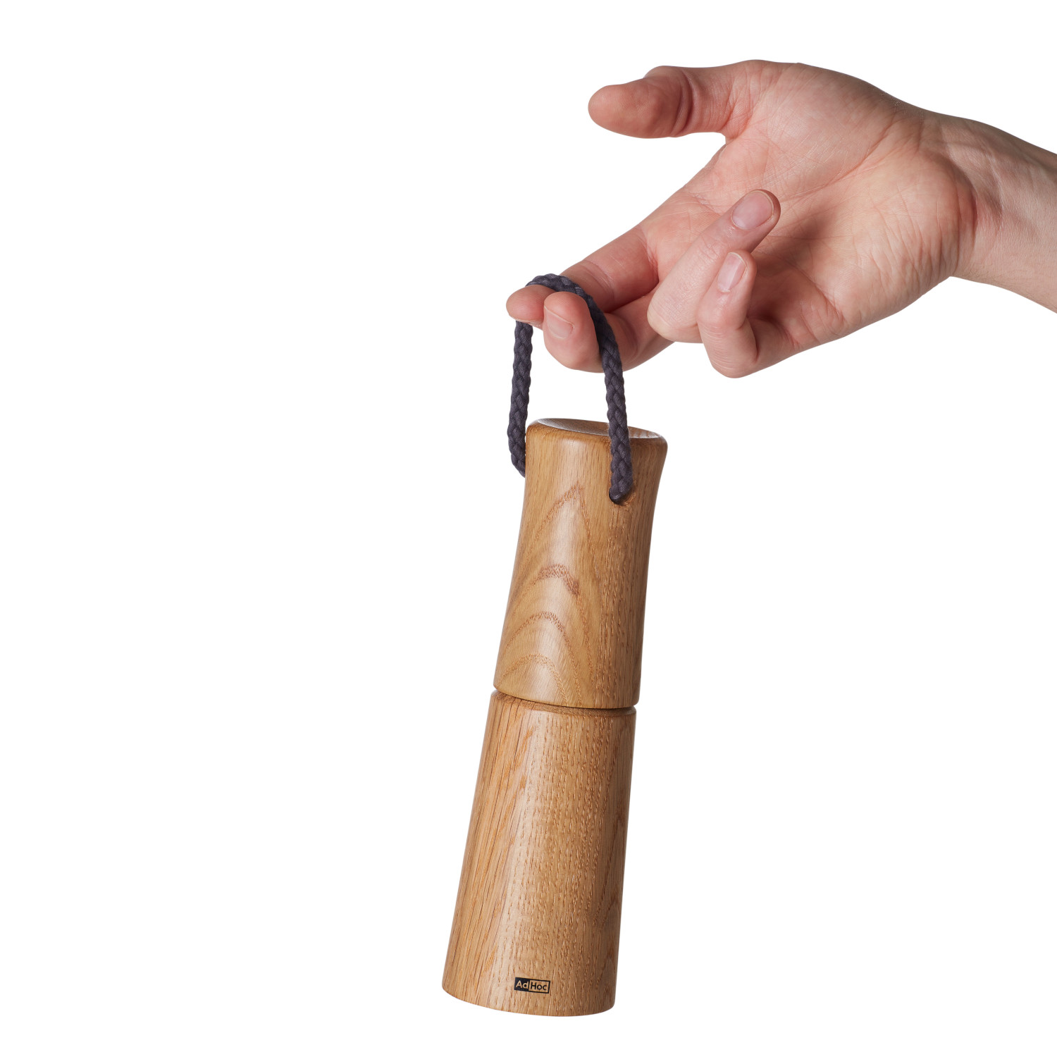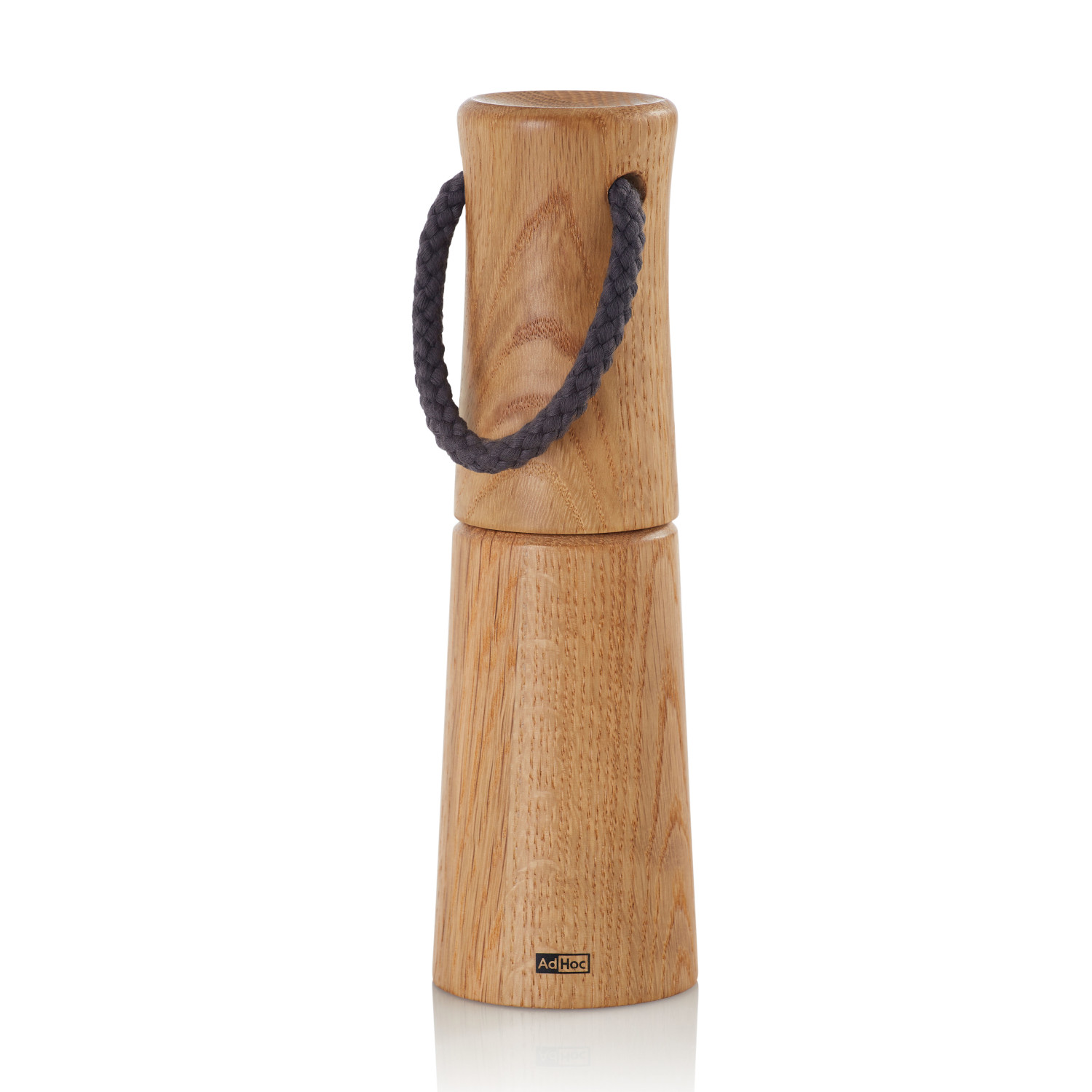 Młynek do soli lub pieprzu z jasnego olejowanego drewna dębowego. Profilowana obudowa o zaokrąglonych krawędziach przyjemnie leży w dłoni. Bawełniany sznurek zamocowany w pokrywie młynka ułatwia przenoszenie.
