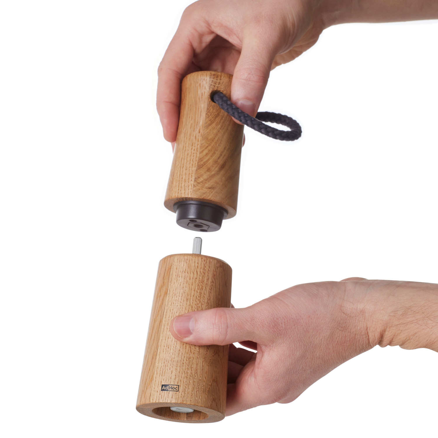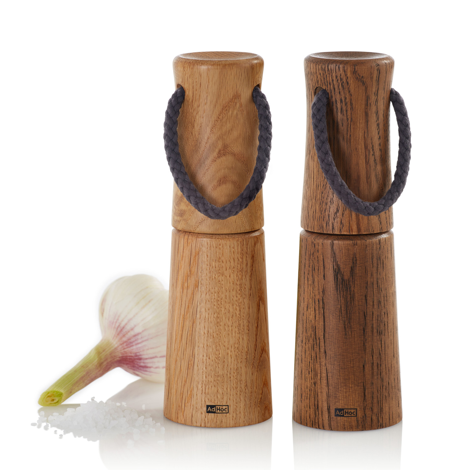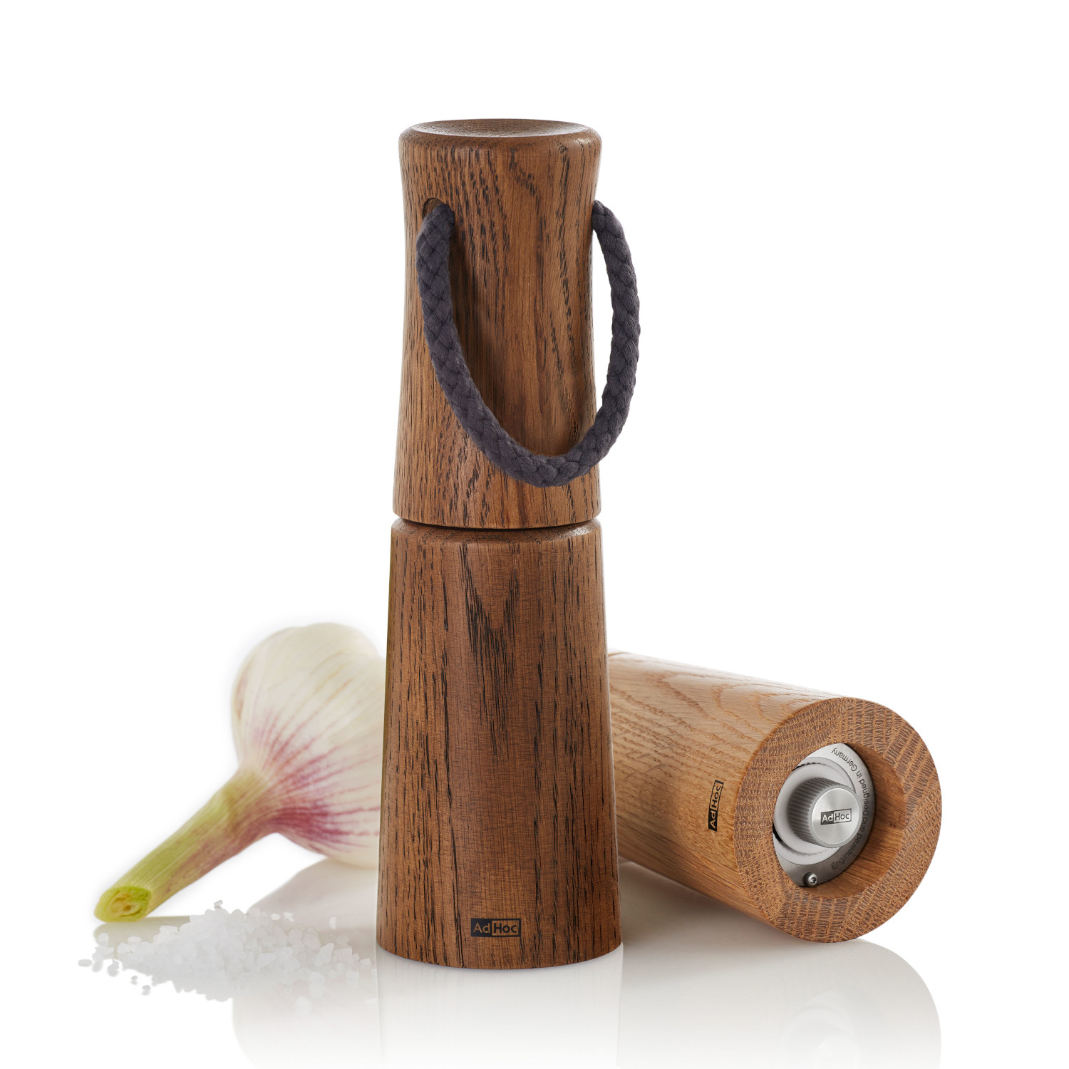 Młynek do soli lub pieprzu z jasnego olejowanego drewna dębowego. Profilowana obudowa o zaokrąglonych krawędziach przyjemnie leży w dłoni. Bawełniany sznurek zamocowany w pokrywie młynka ułatwia przenoszenie.