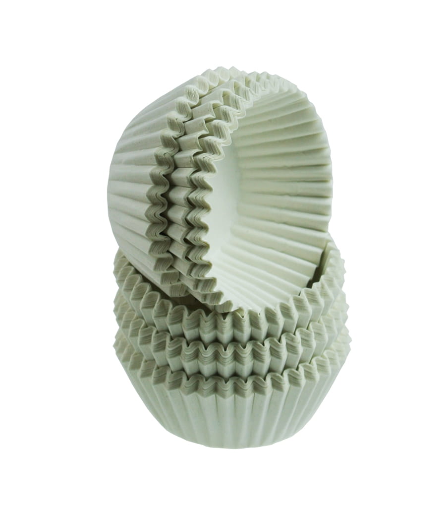 Białe papilotki do pieczenia pakowane po 25 sztuk o wymiarze podstawy 3,5 cm.