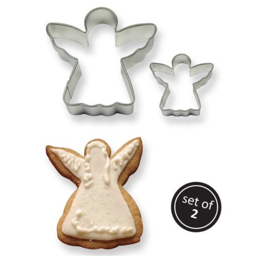 Metalowe wykrawaczki do ciastek w kształcie aniołków w dwóch rozmiarach.