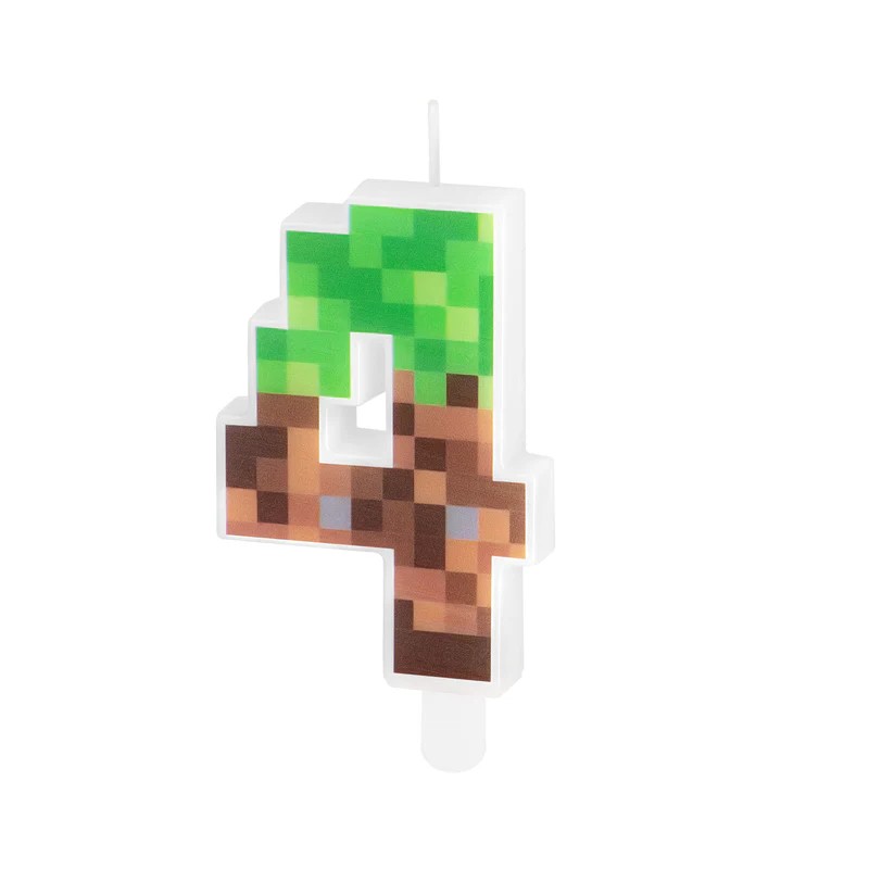 Świeczka na tort urodzinowy cyfra "4", minecraft - PartyPal