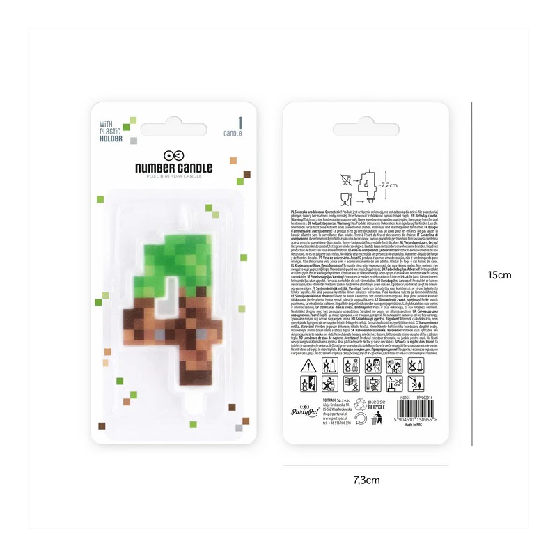 Świeczka cyferka z motywem minecrafta z pewnością przypadnie do gustu miłośnikom gier komputerowych. Grafika inspirowana klasyką gamingu to świetna niespodzianka dla jubilata lub jubilatki. Nie ma wątpliwości, że impreza urodzinowa nabierze odpowiedniego charakteru!