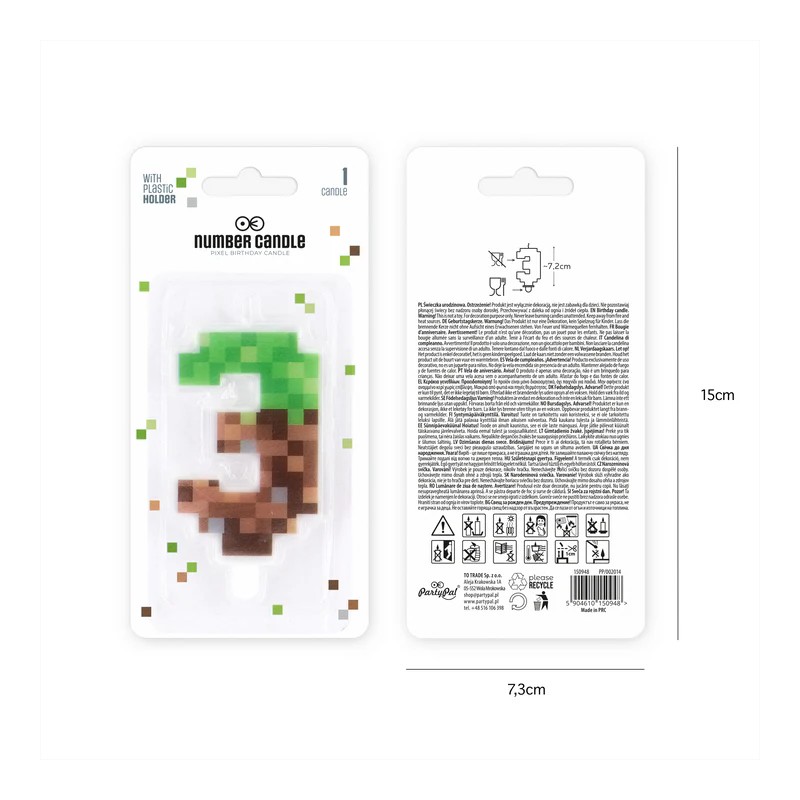 Świeczka cyferka z motywem minecrafta z pewnością przypadnie do gustu miłośnikom gier komputerowych. Grafika inspirowana klasyką gamingu to świetna niespodzianka dla jubilata lub jubilatki. Nie ma wątpliwości, że impreza urodzinowa nabierze odpowiedniego charakteru!