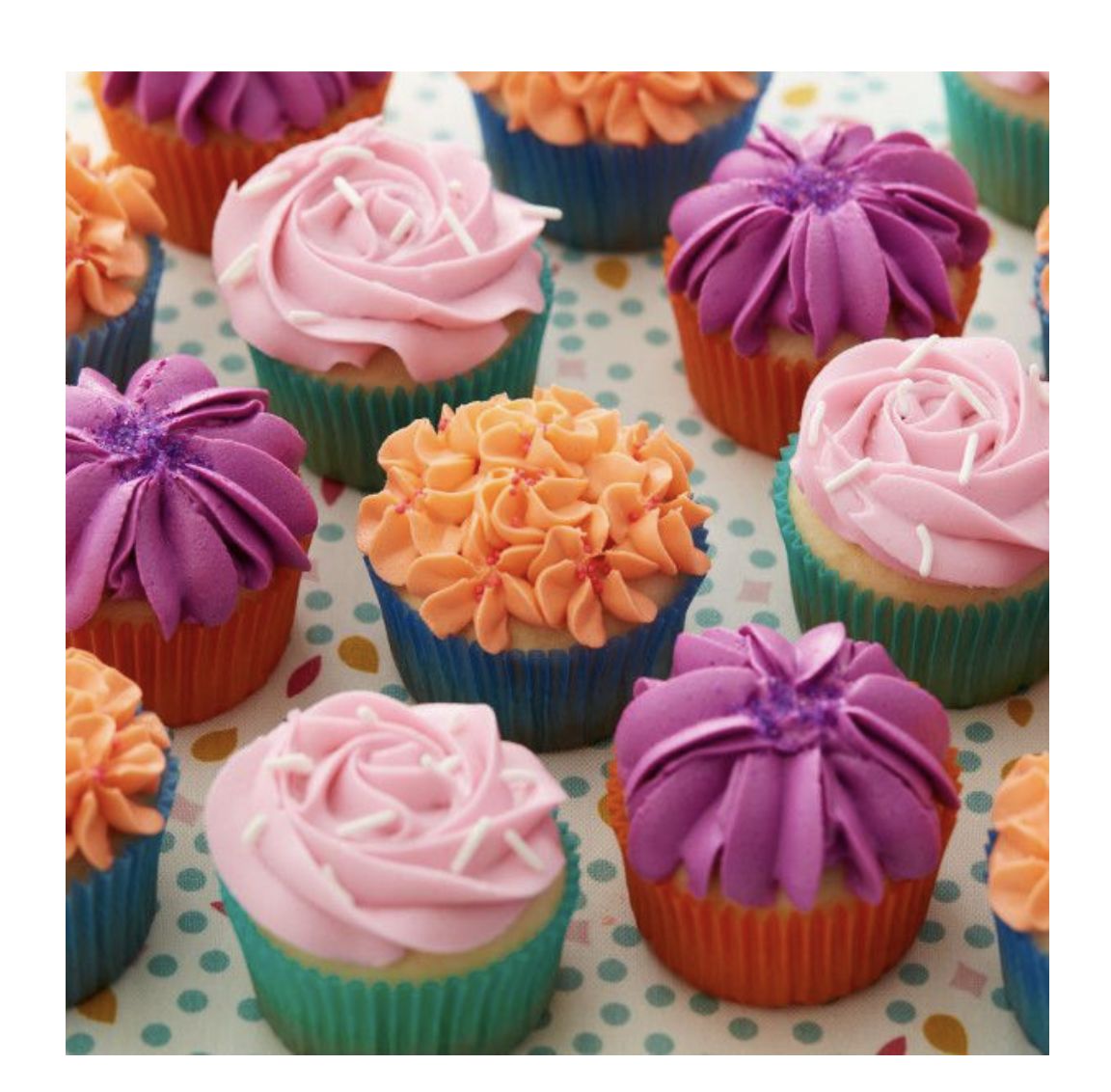 Z łatwością przykryj smakołyki kwiatami, korzystając z końcówki dekoracyjnej nr 2D i zestawu torebek do dekoracji.