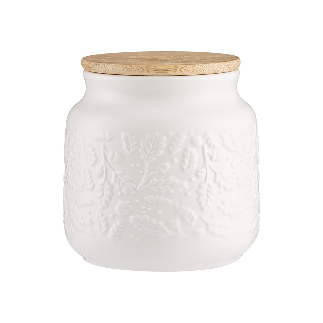 Wykonany z wysokiej jakości kamionki. Ścianki naczynia zdobi efektowny tłoczony wzór żołędzi i dębowych liści.