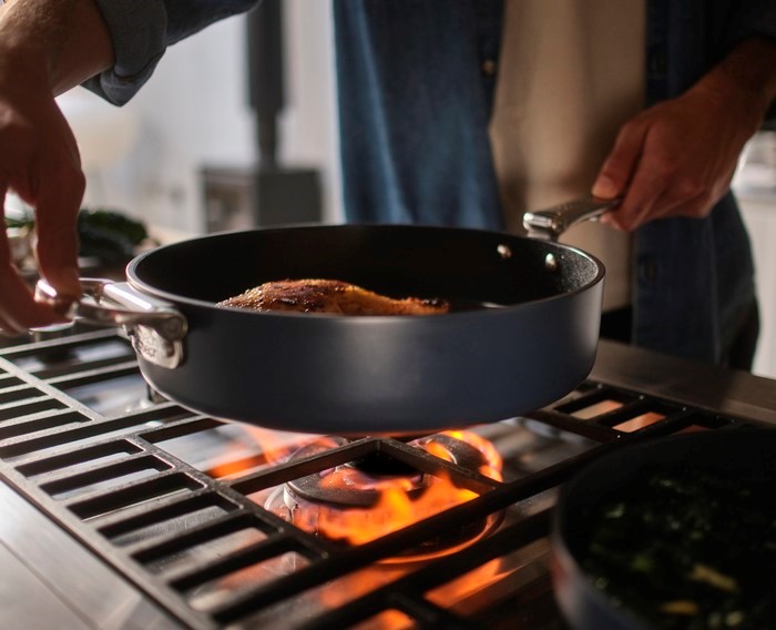 Patelnia nadaje się na wszystkie rodzaje kuchenek. Można jej używać w piekarniku, maksymalnie do temperatury 232°C.